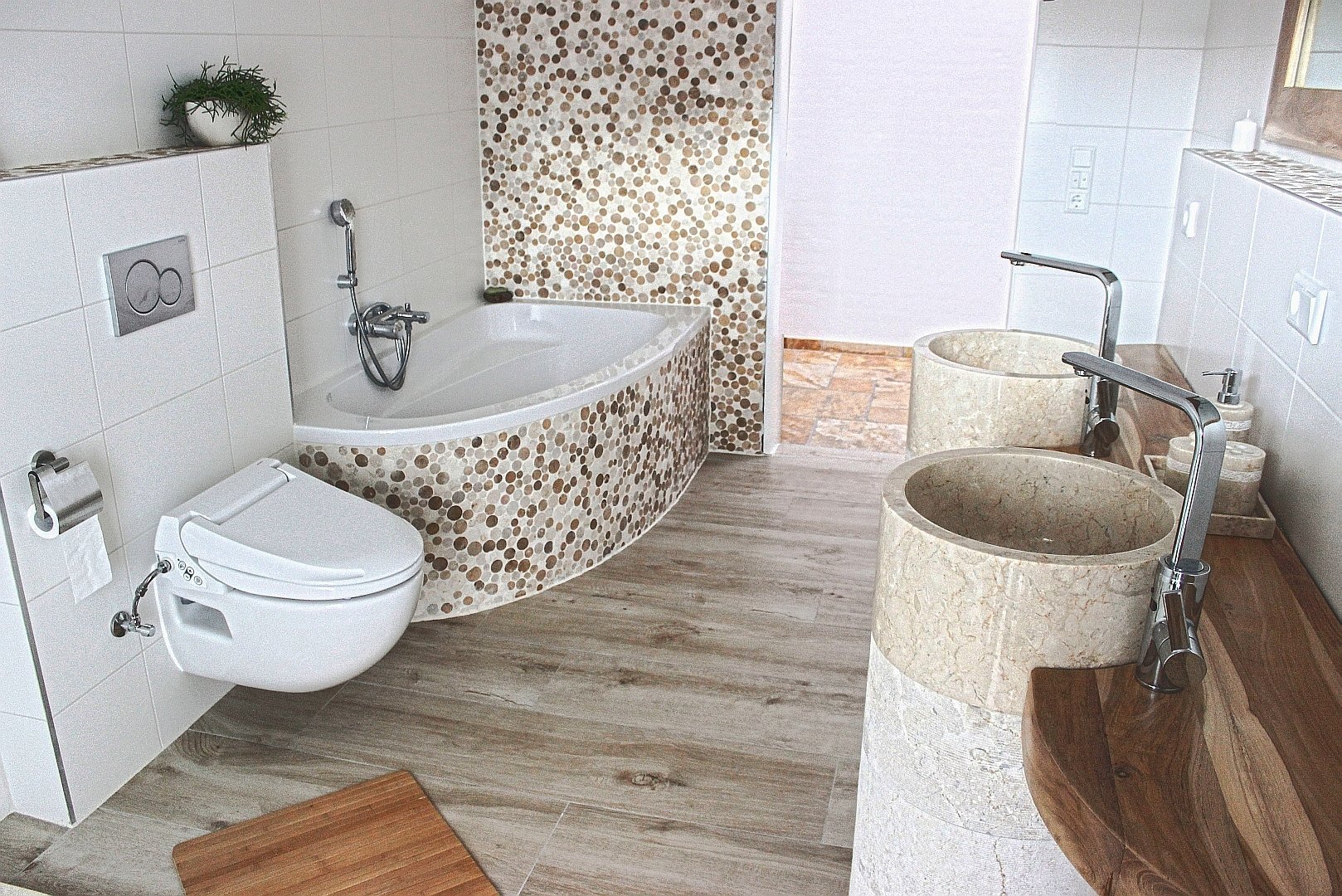 Галька в интерьере ванной комнаты