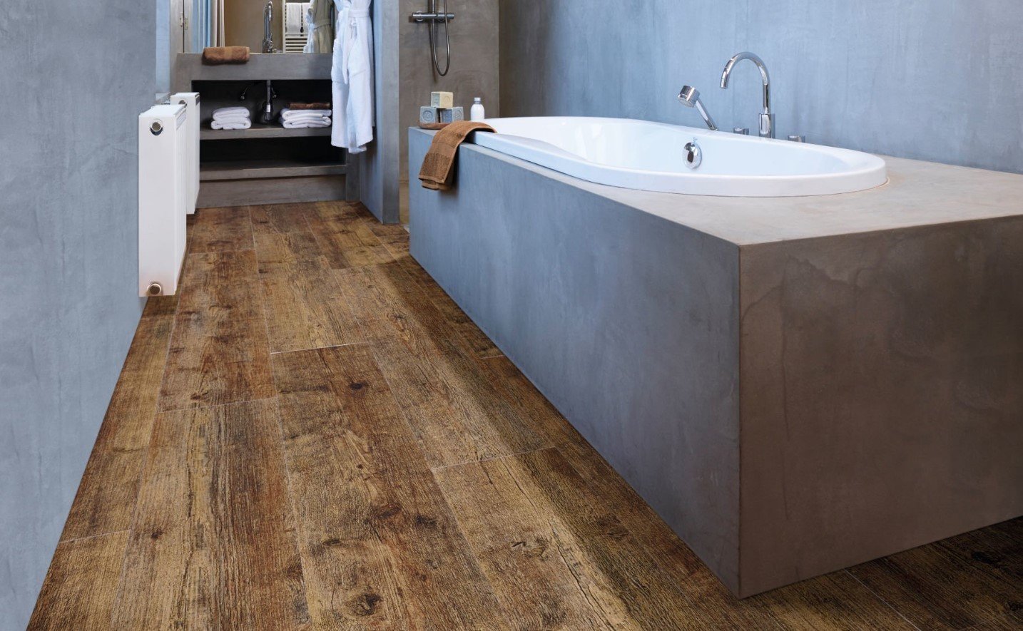 Плитка под дерево в ванной