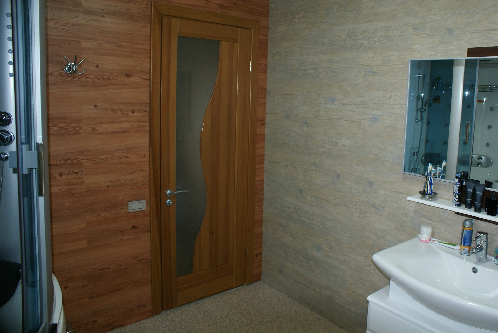 Отделка стен ПВХ панелями под дерево в ванной