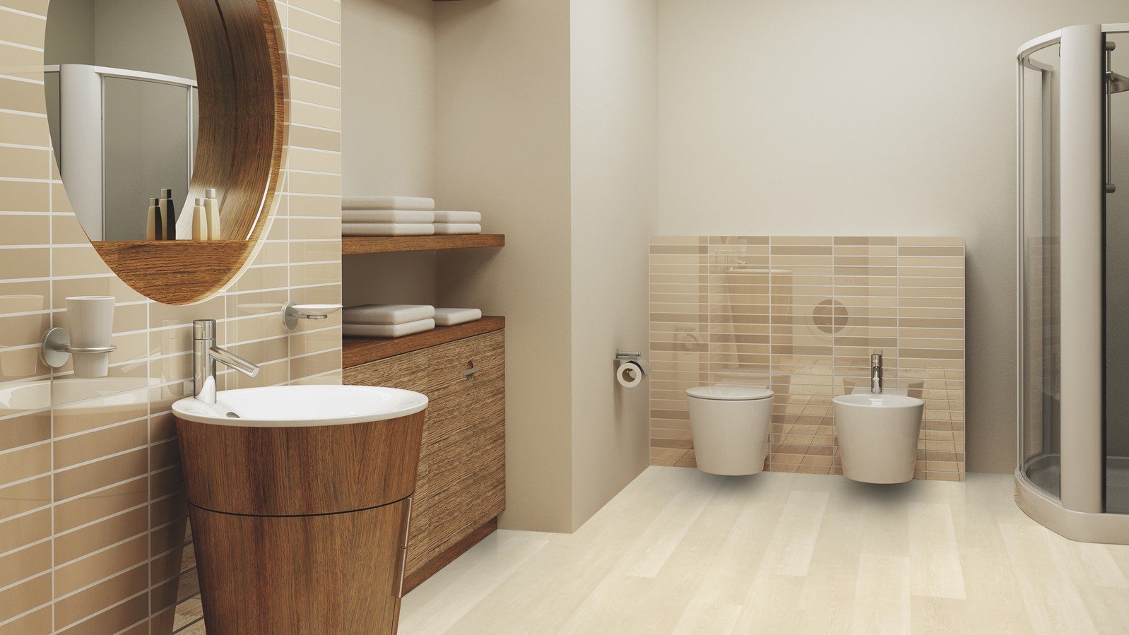 Ванная под светлое дерево