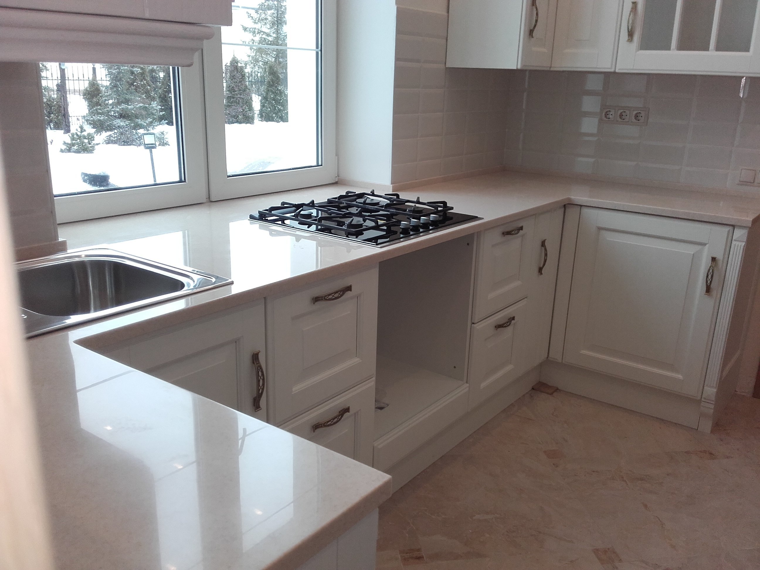Кухонный гарнитур со столешницей у окна
