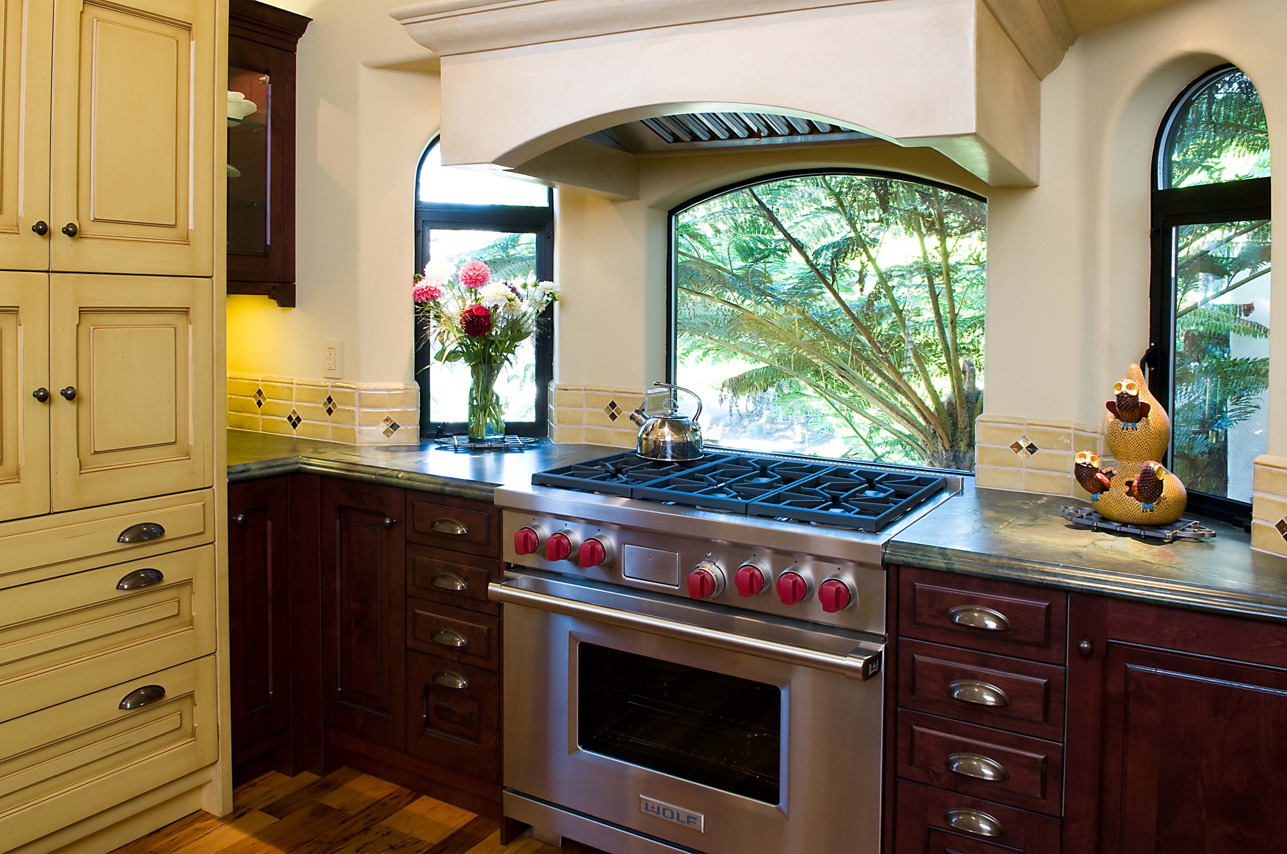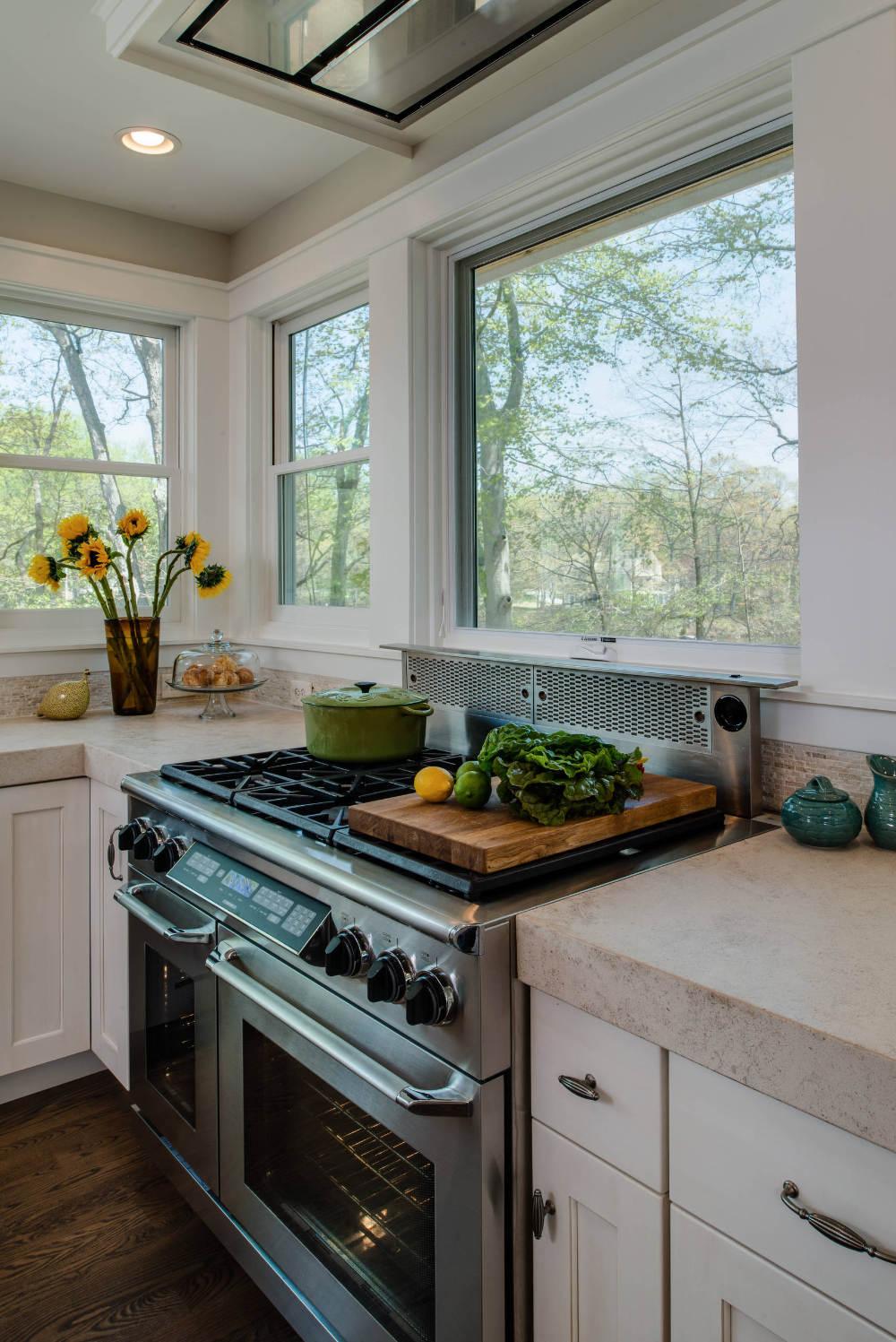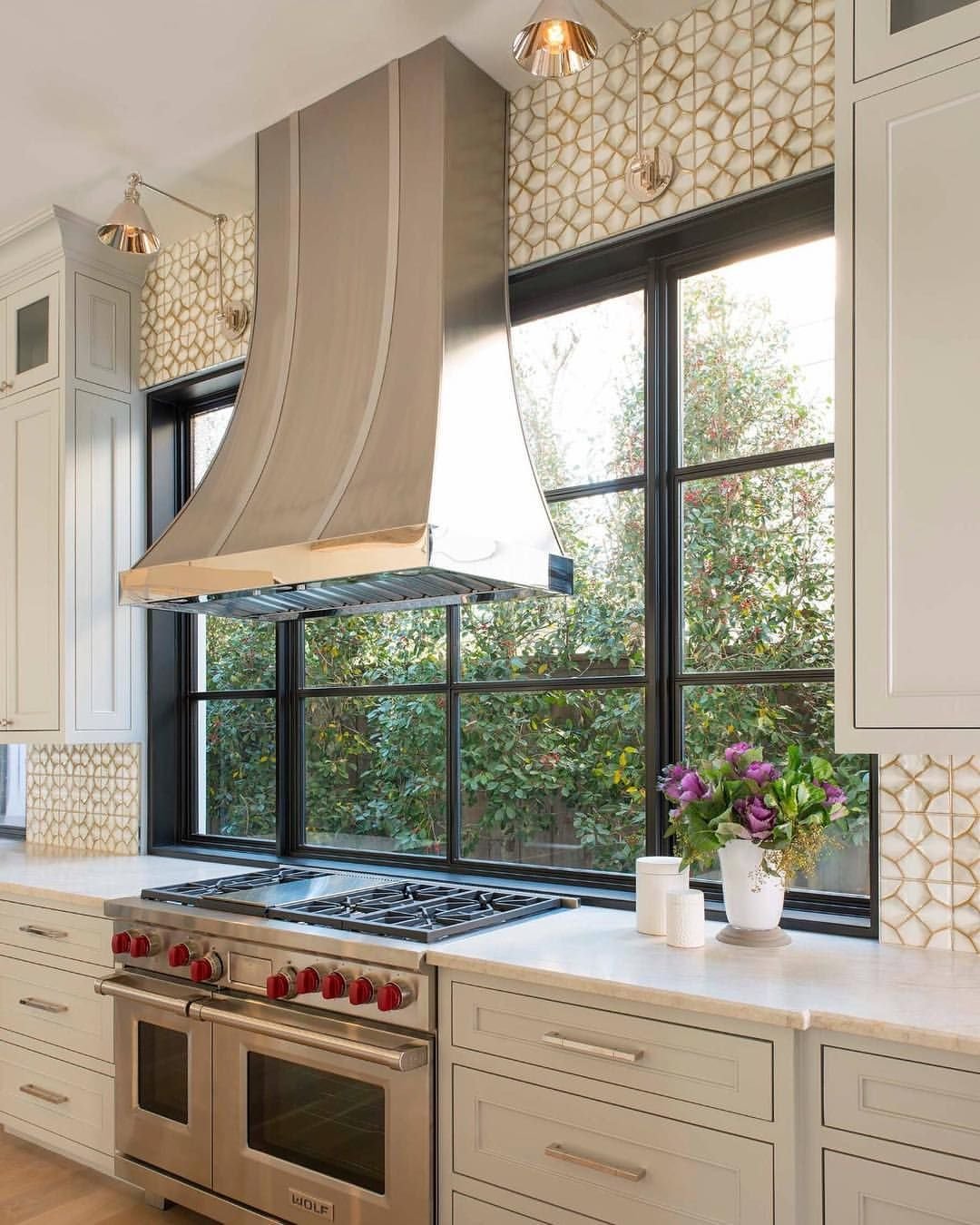 Газовая плита у окна в интерьере