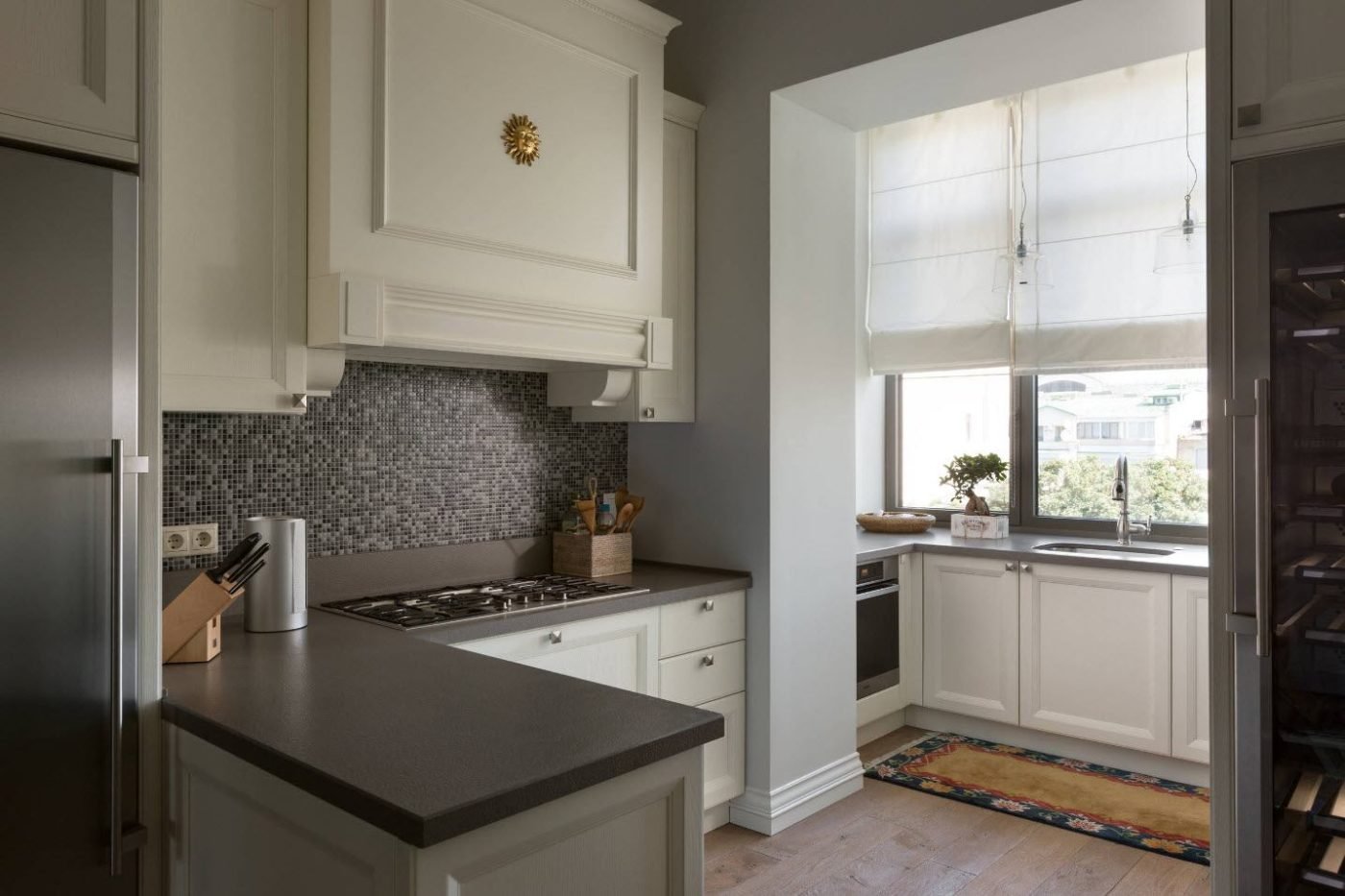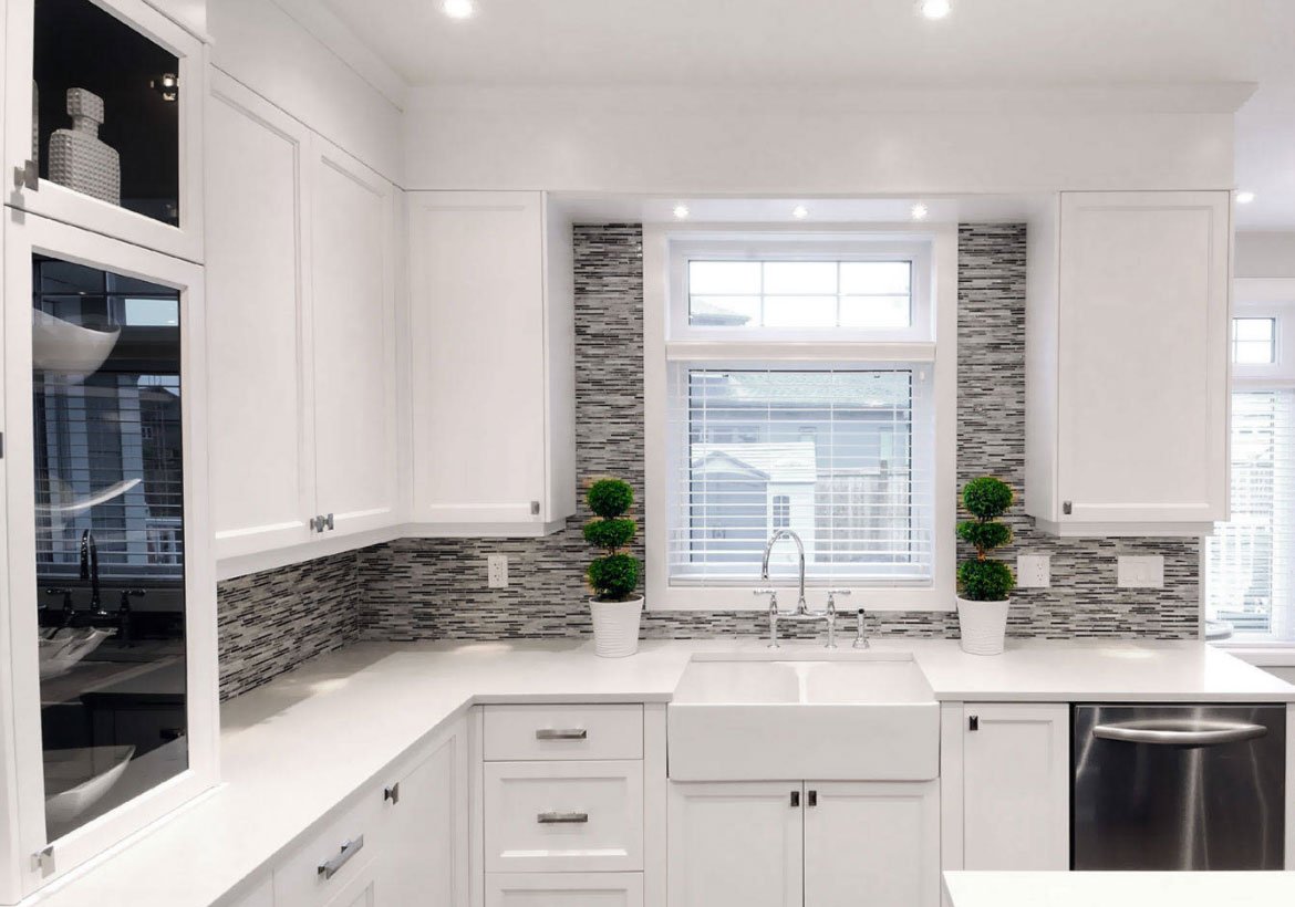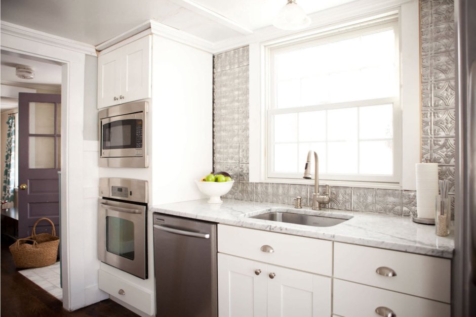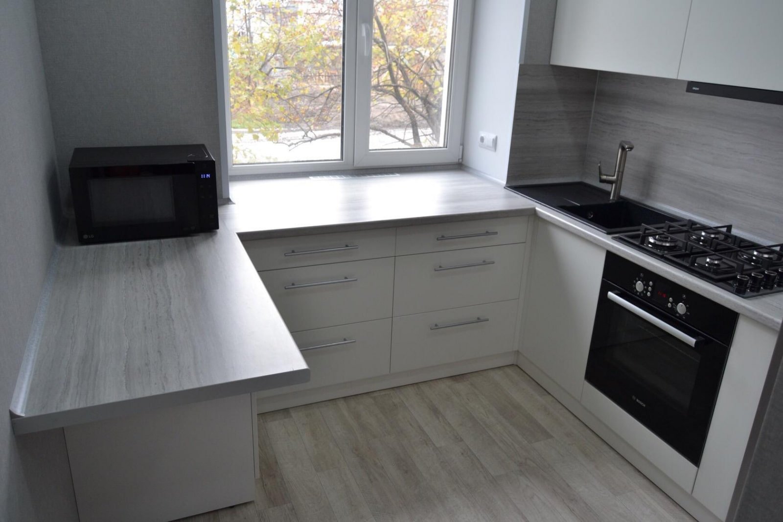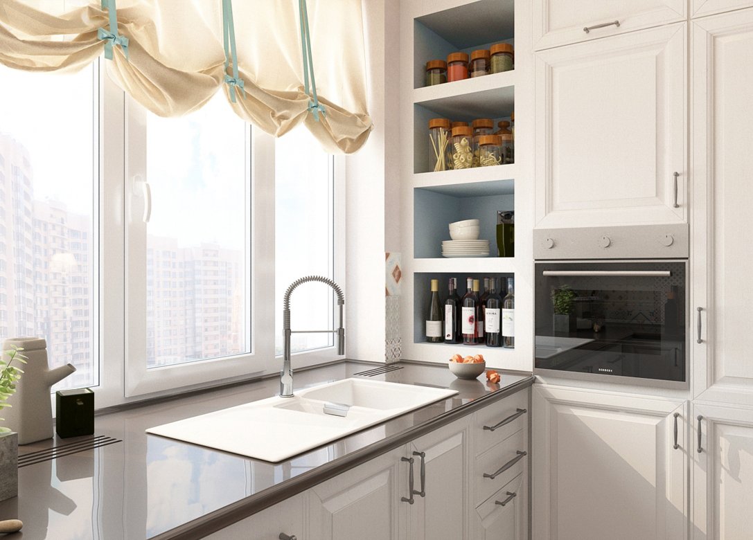 Белая кухня с окном
