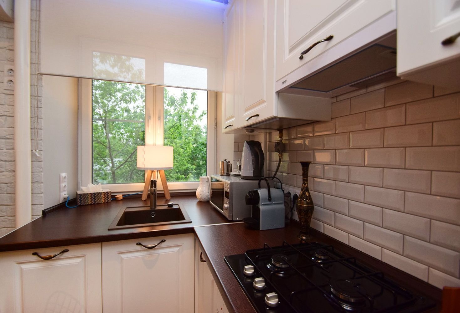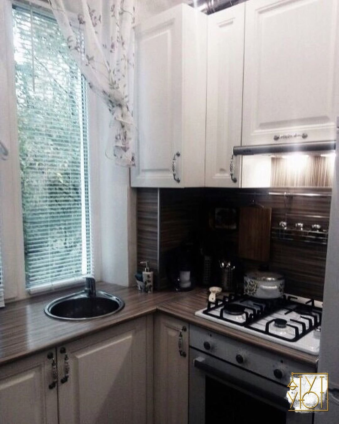 Маленькая кухня с мойкой у окна