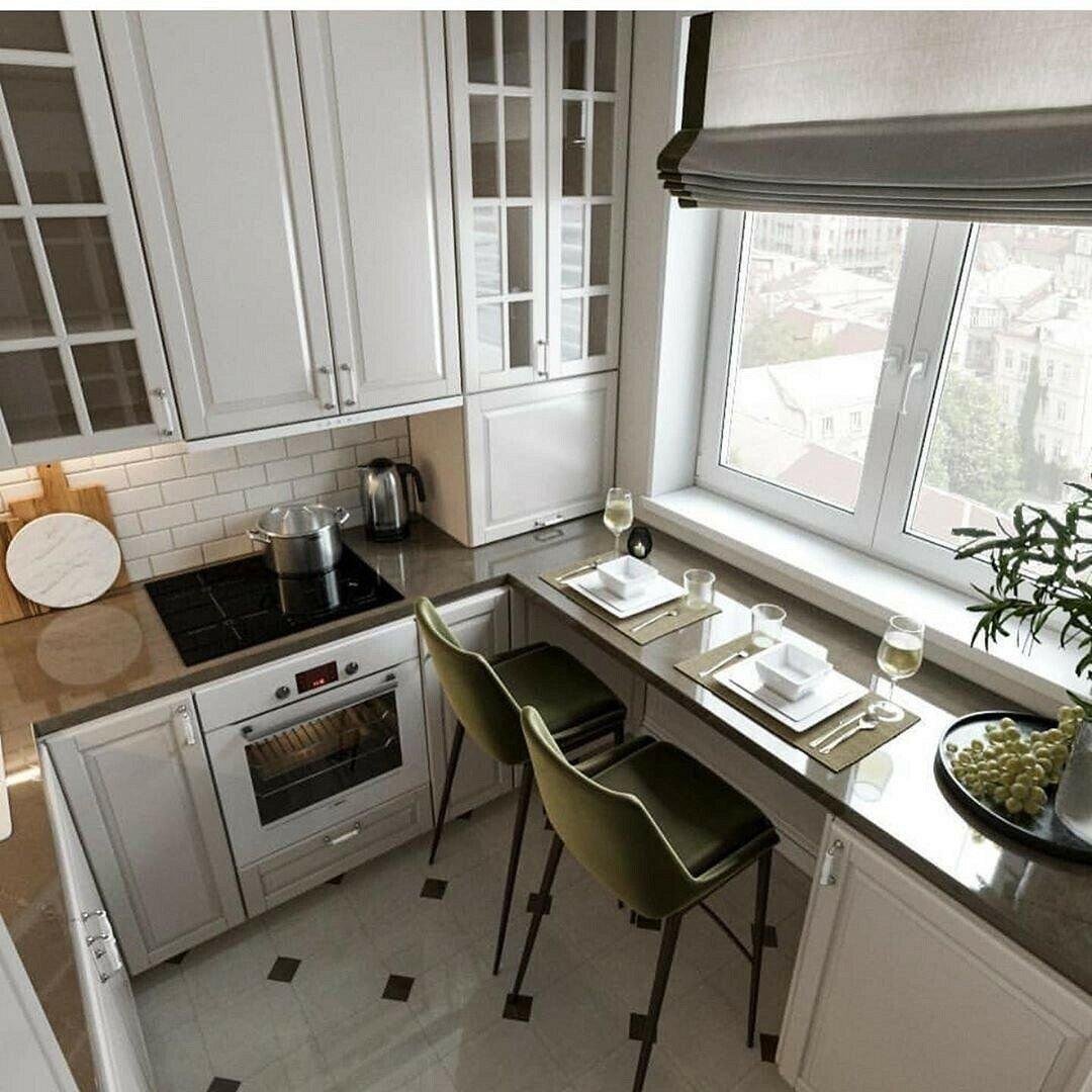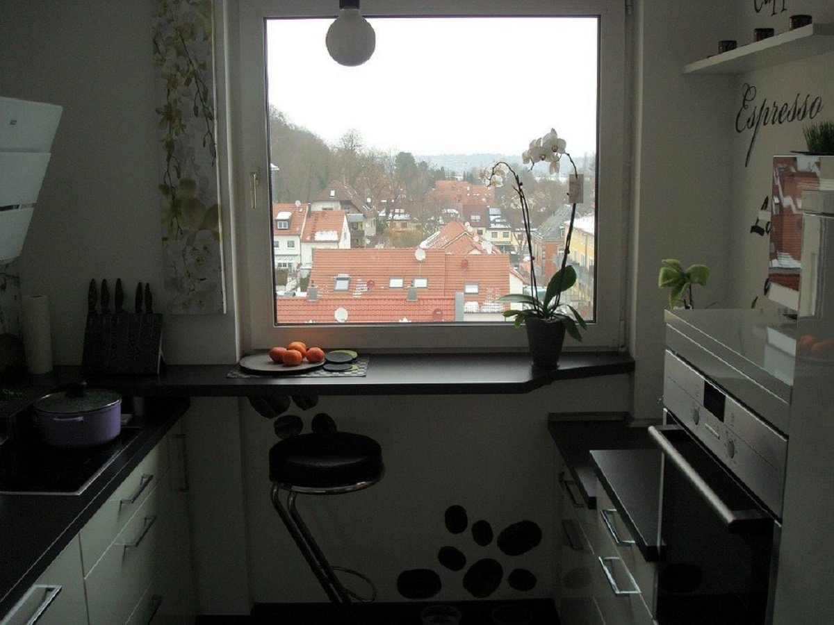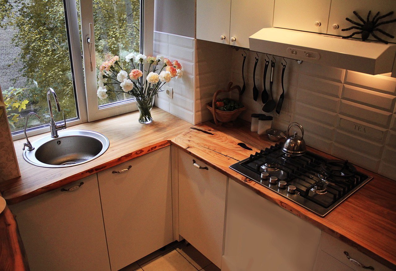 Маленькая кухня с подоконником столешницей