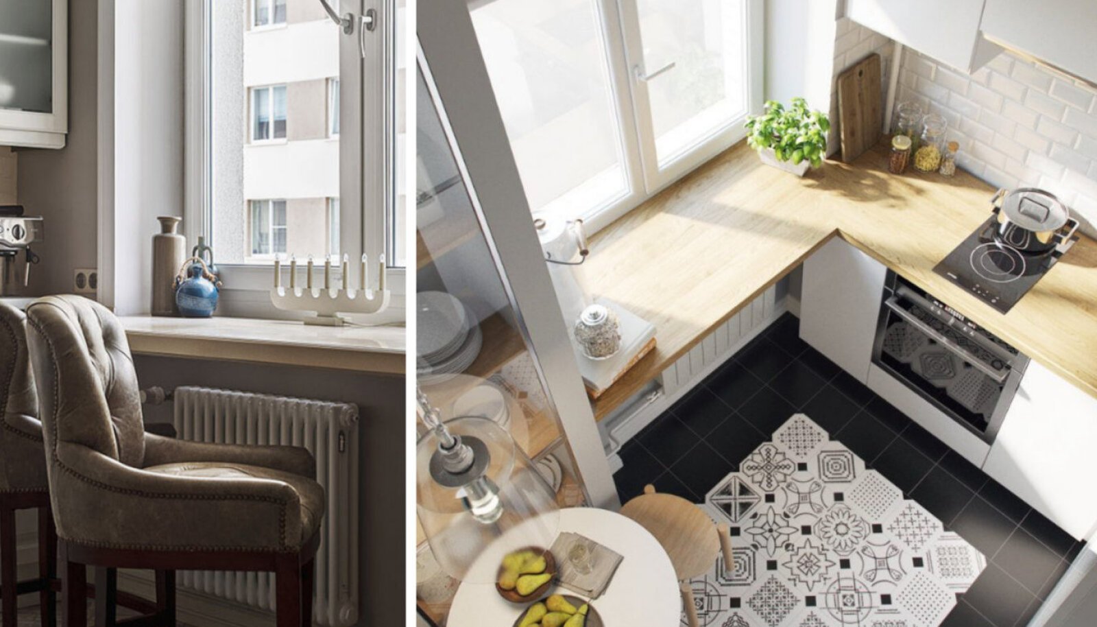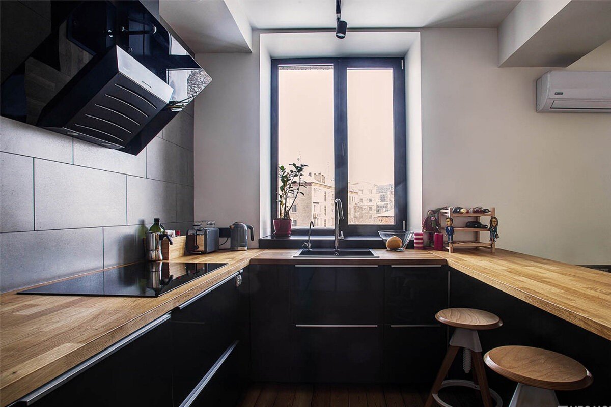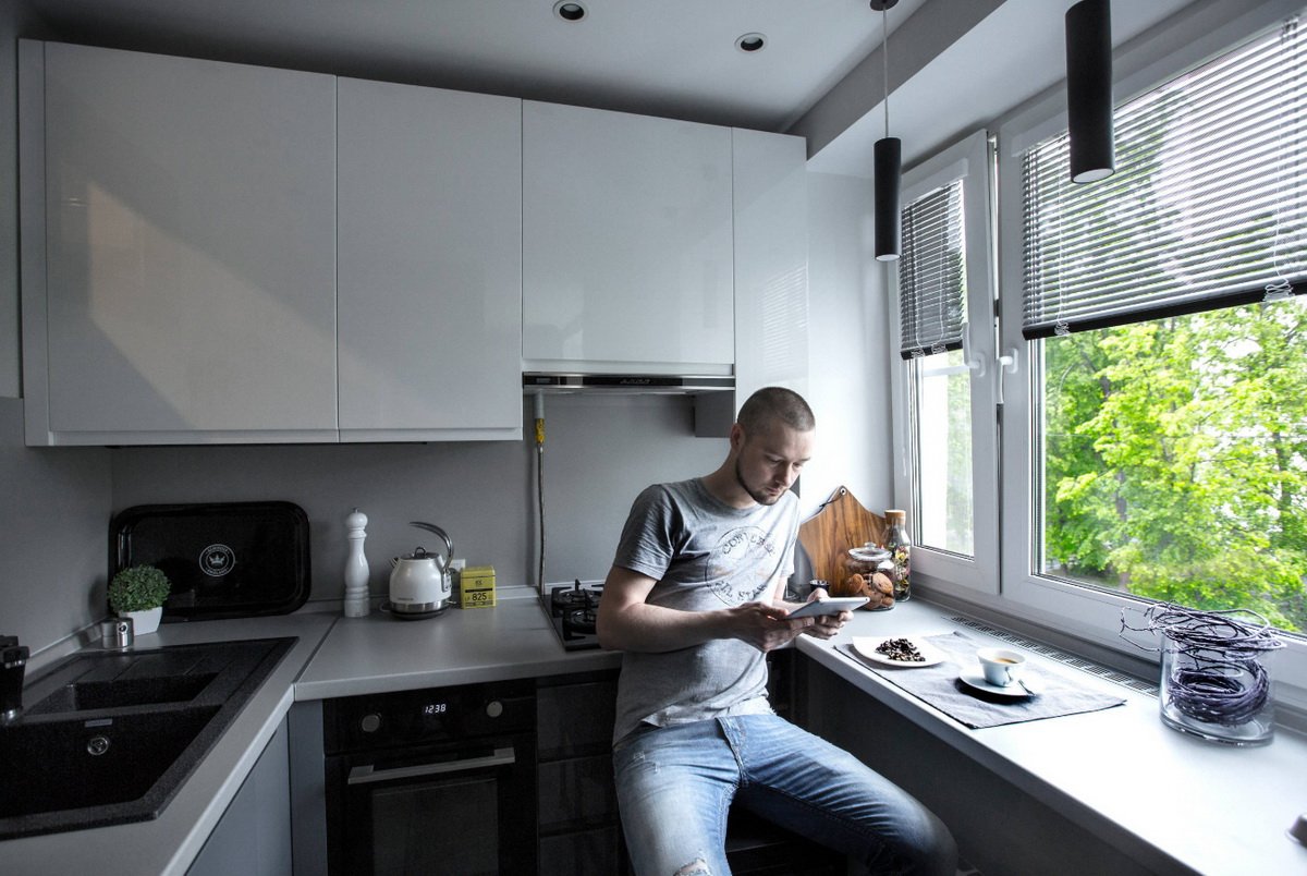 Маленькая кухня с подоконником столешницей