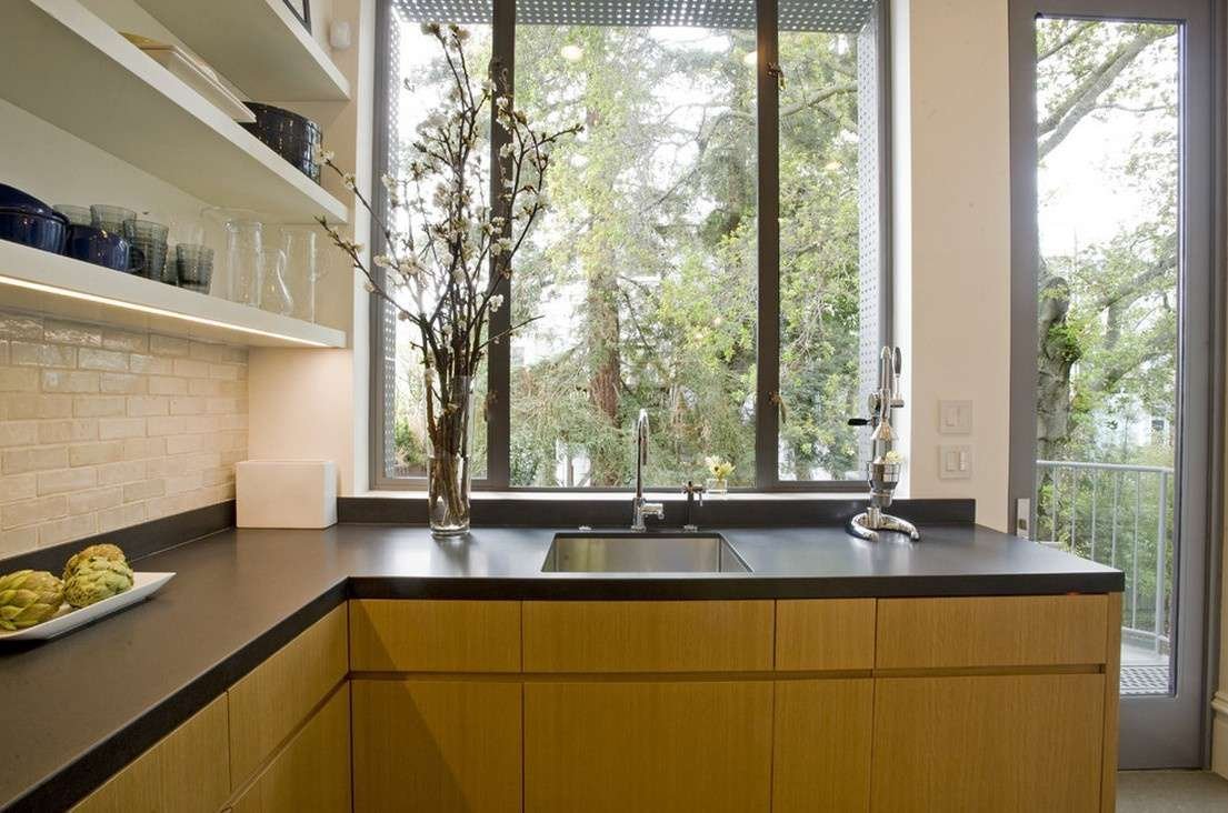 Кухня столешница раковина у окна