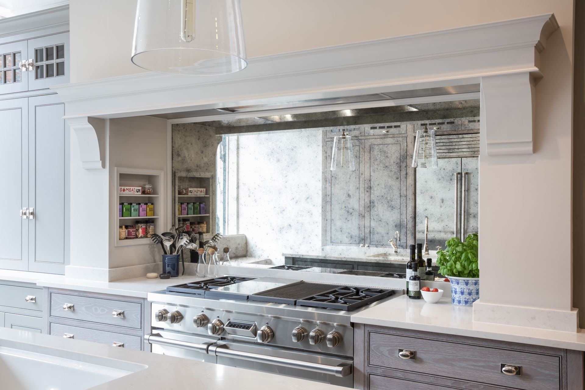 Состаренное зеркало на фартуке кухни