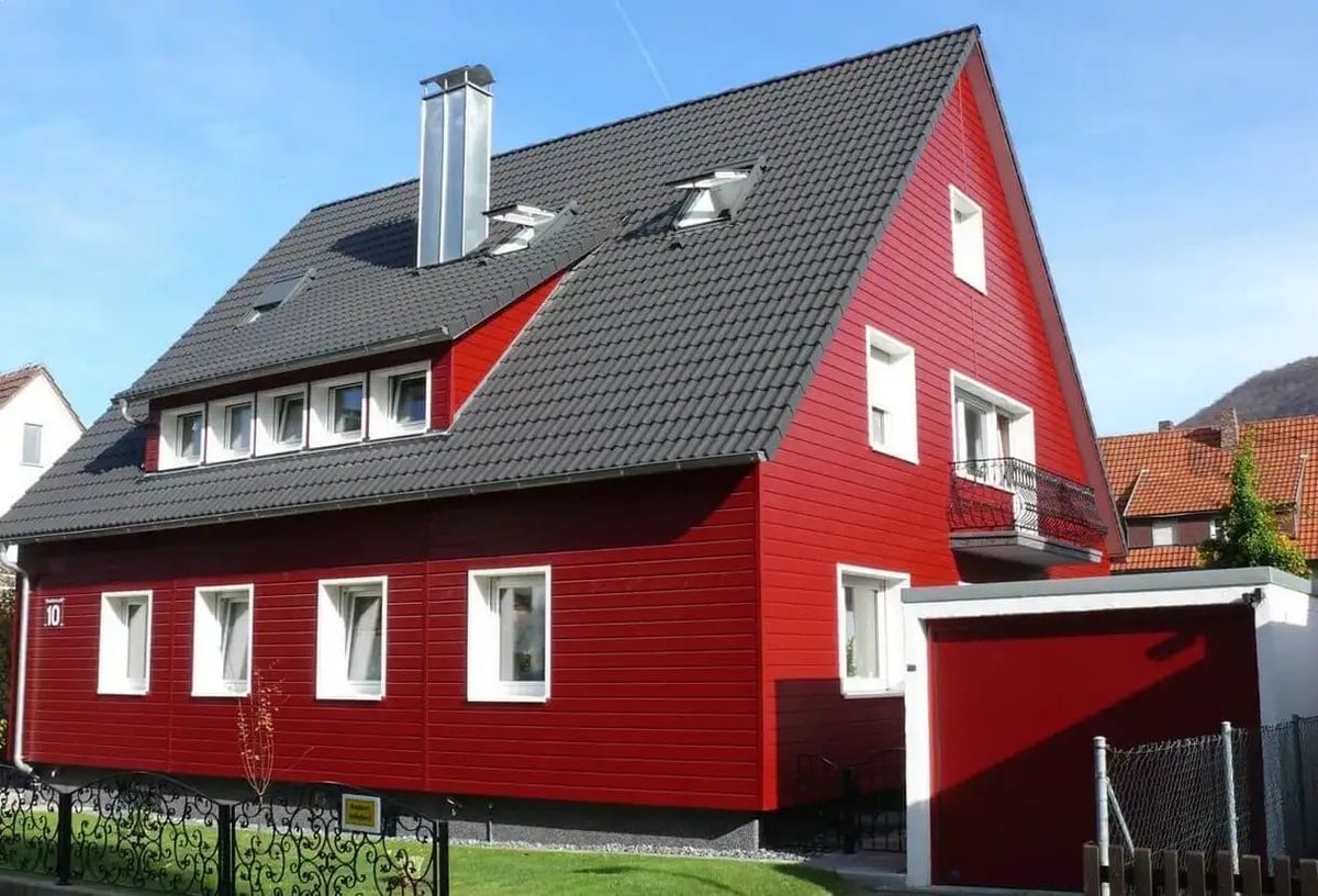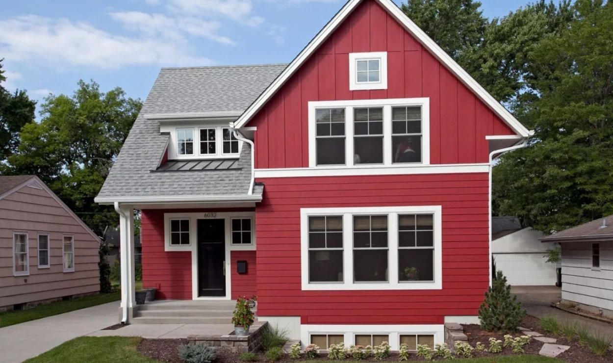Красный фасад дома