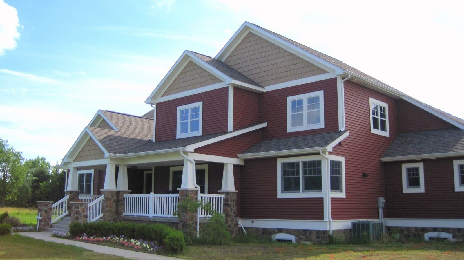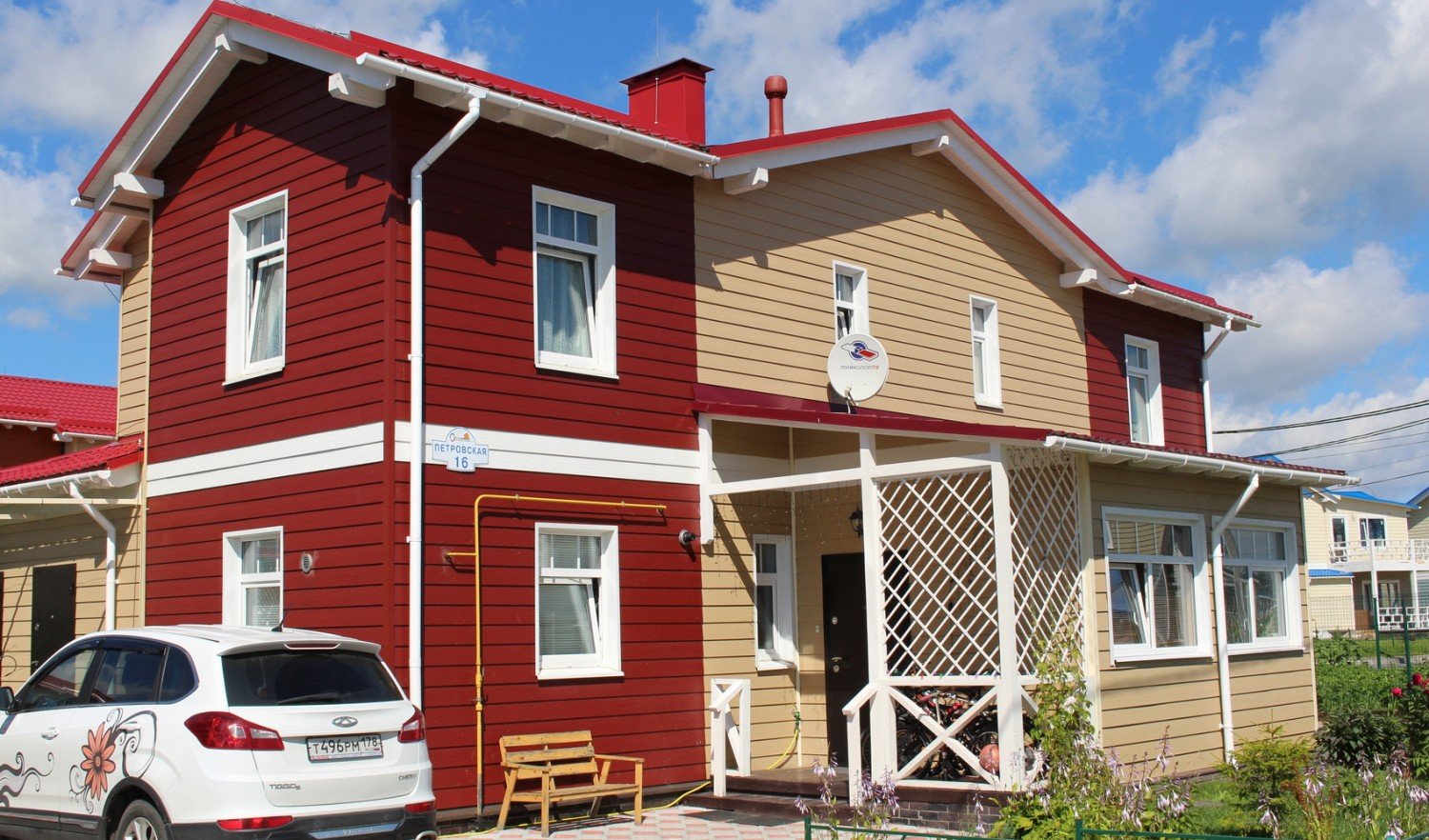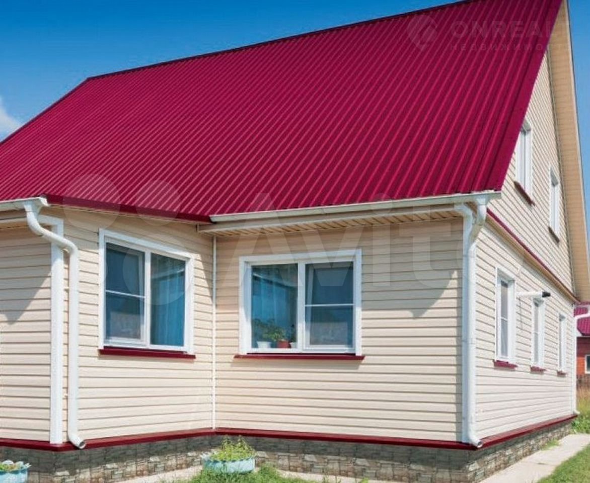 Дом с красной крышей и сайдингом