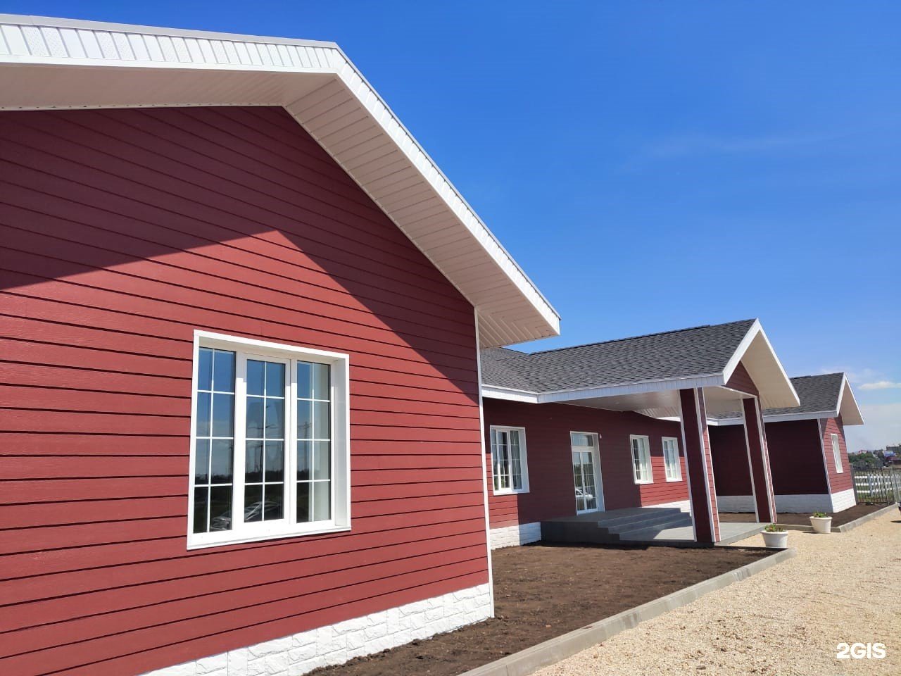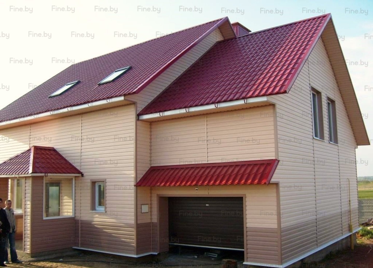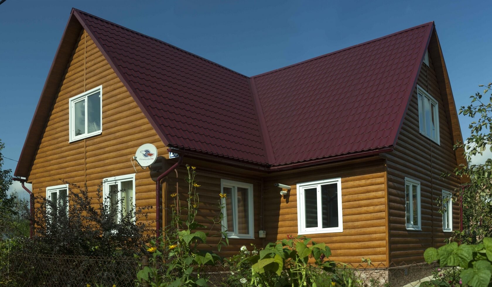 Дом с бордовой крышей и сайдингом