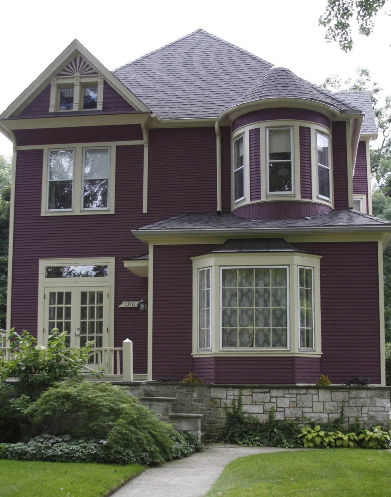 Бордовый дом с белыми окнами