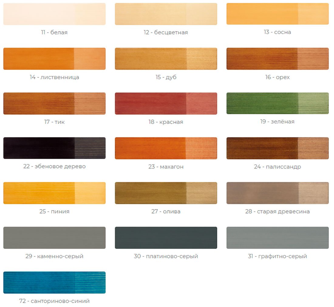 Пинотекс древесная Гармония 50 оттенков колеровки