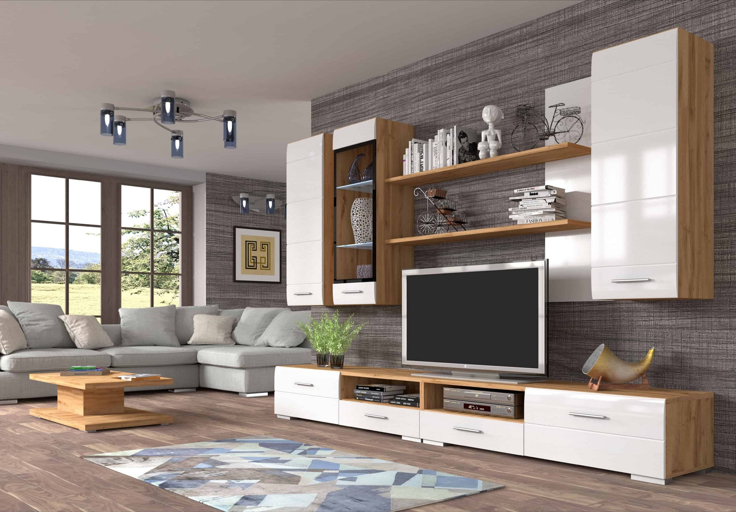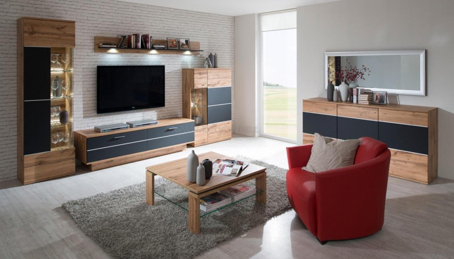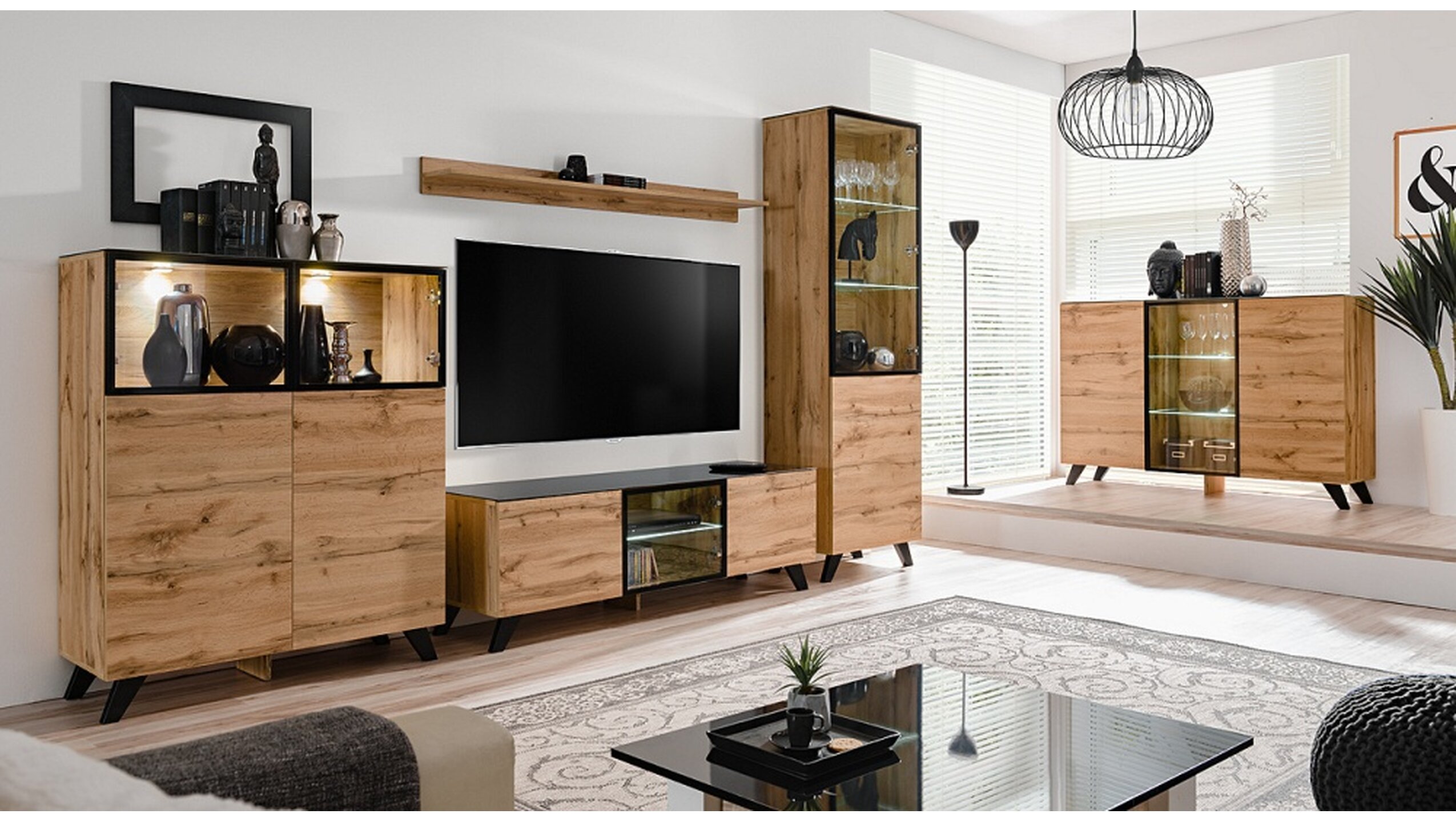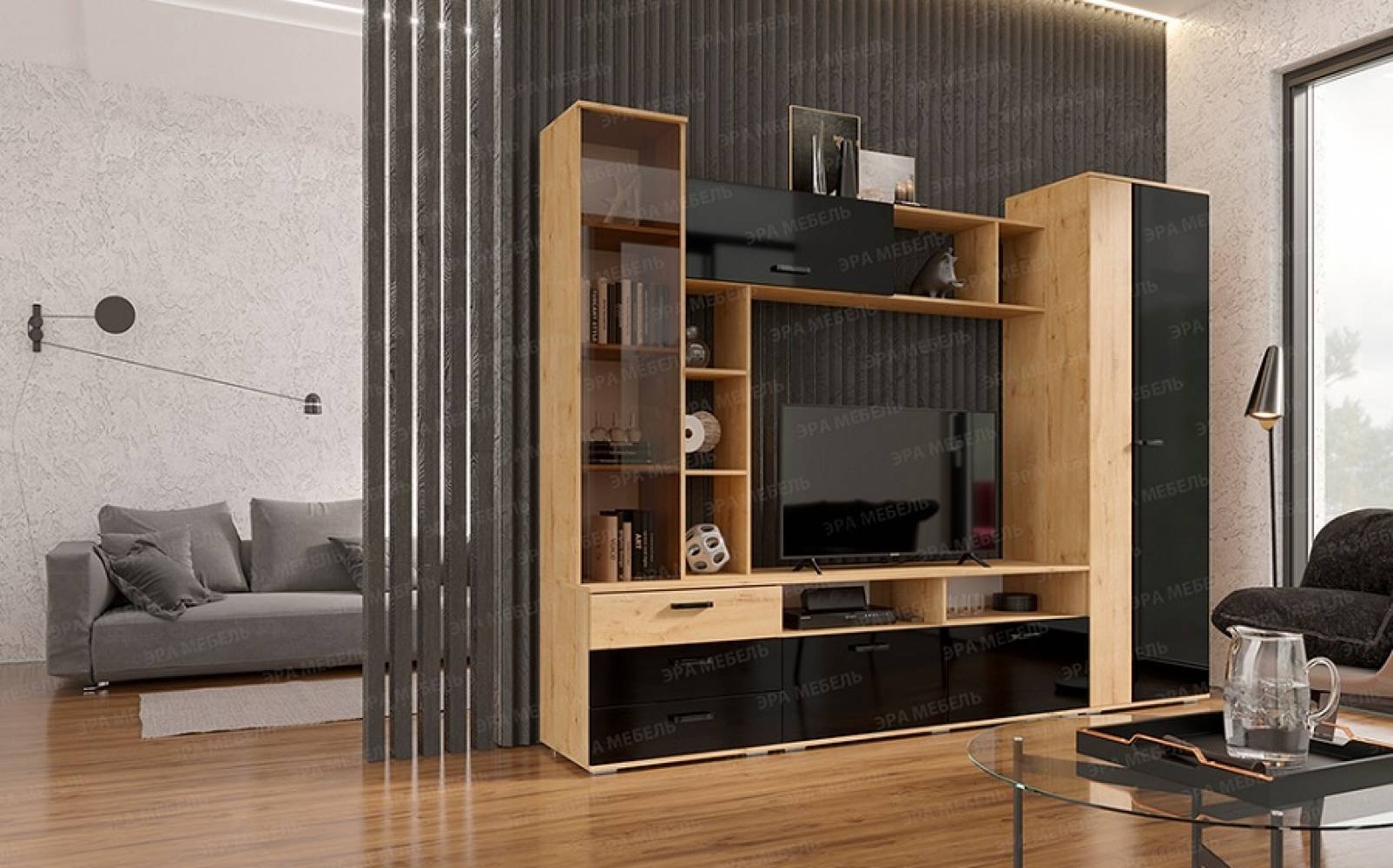 Гостиная Крокус дуб Вотан/чёрный глянец