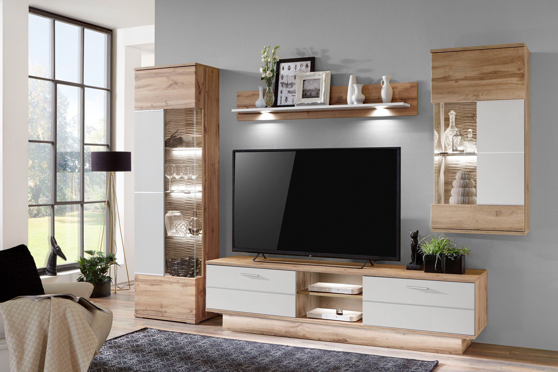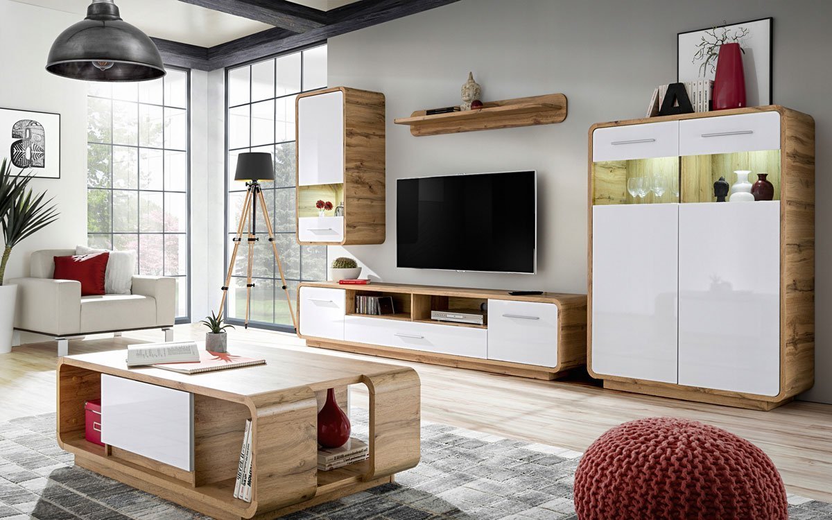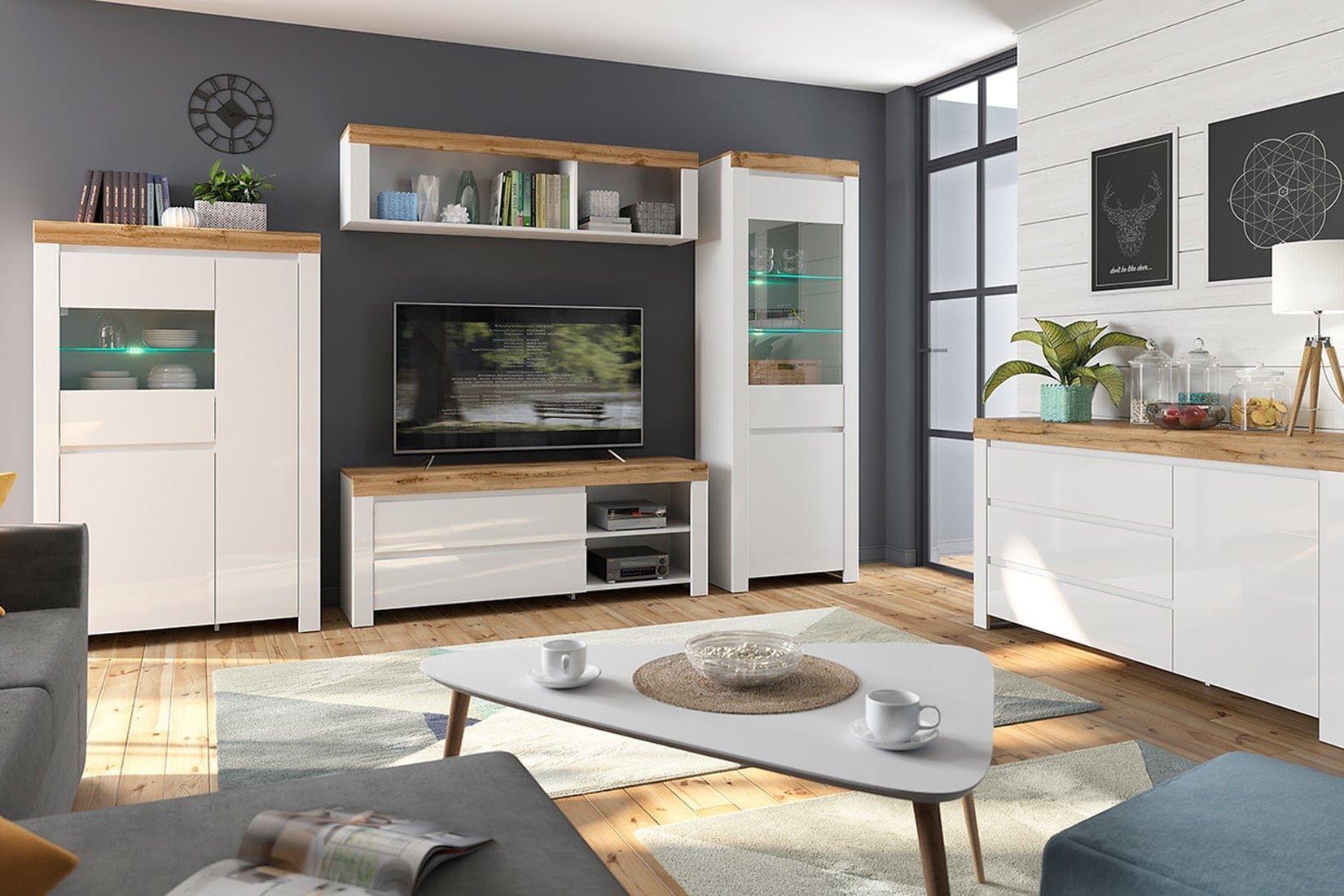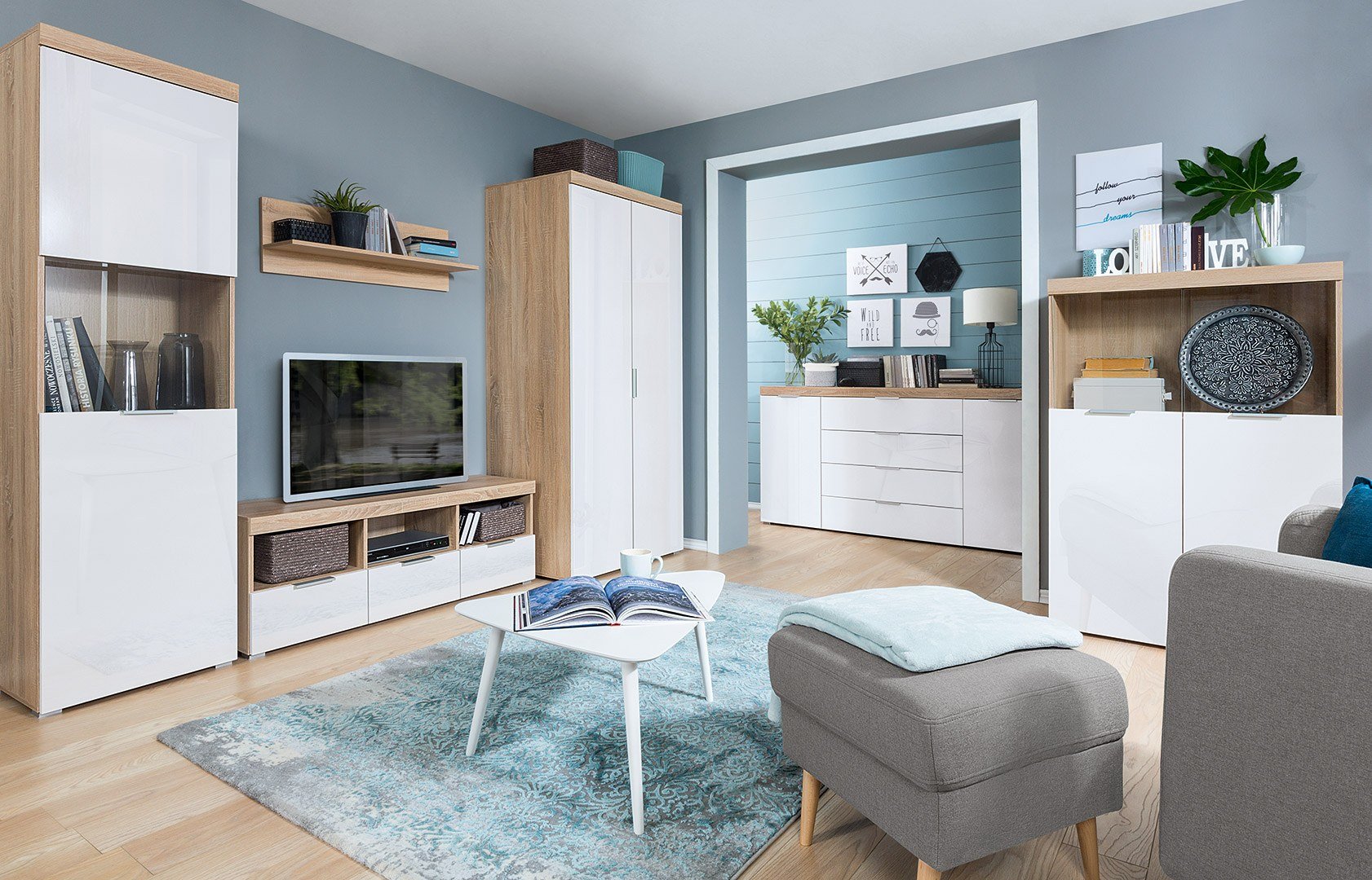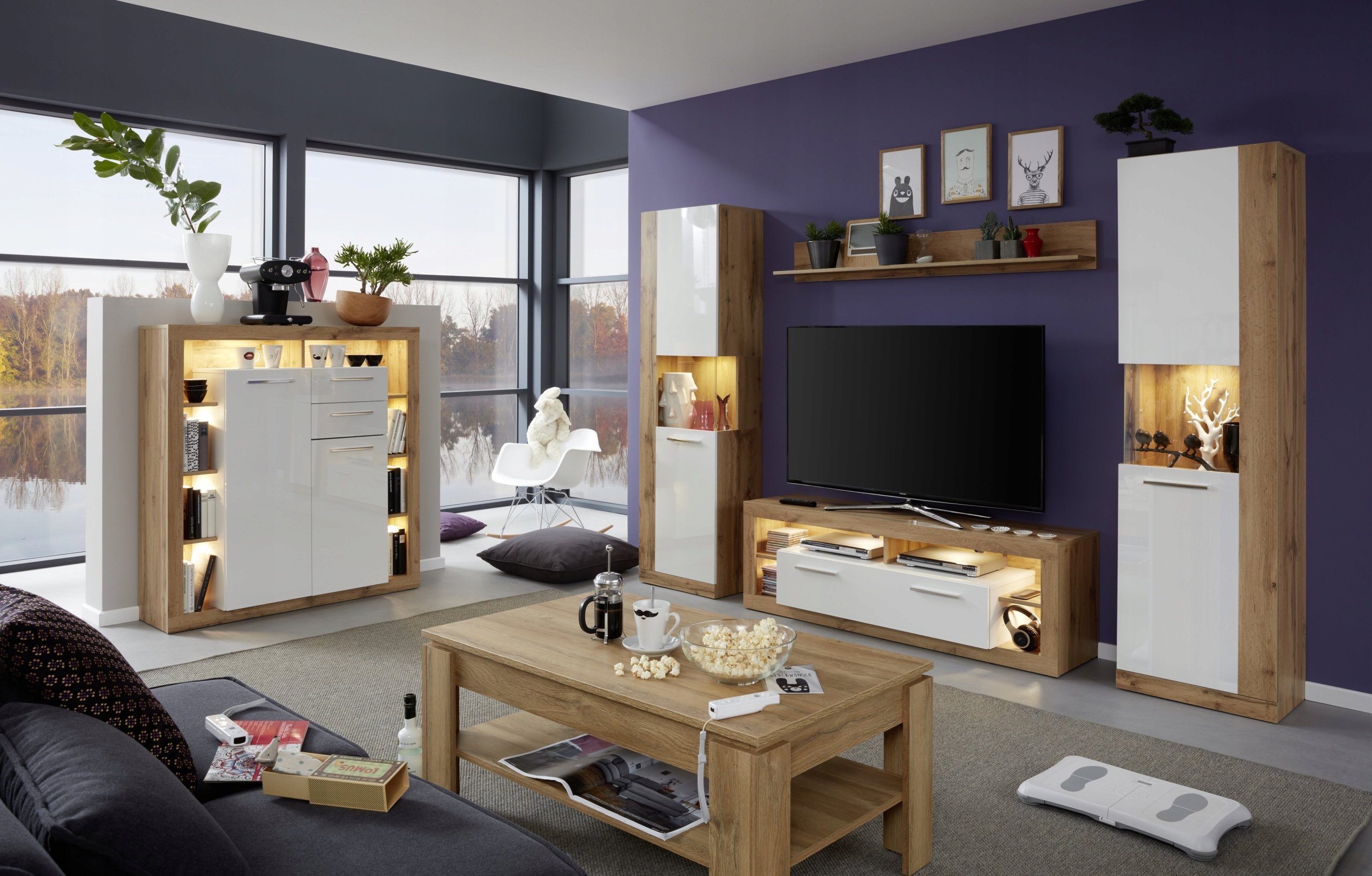 Гостиная Крокус дуб Вотан/чёрный глянец