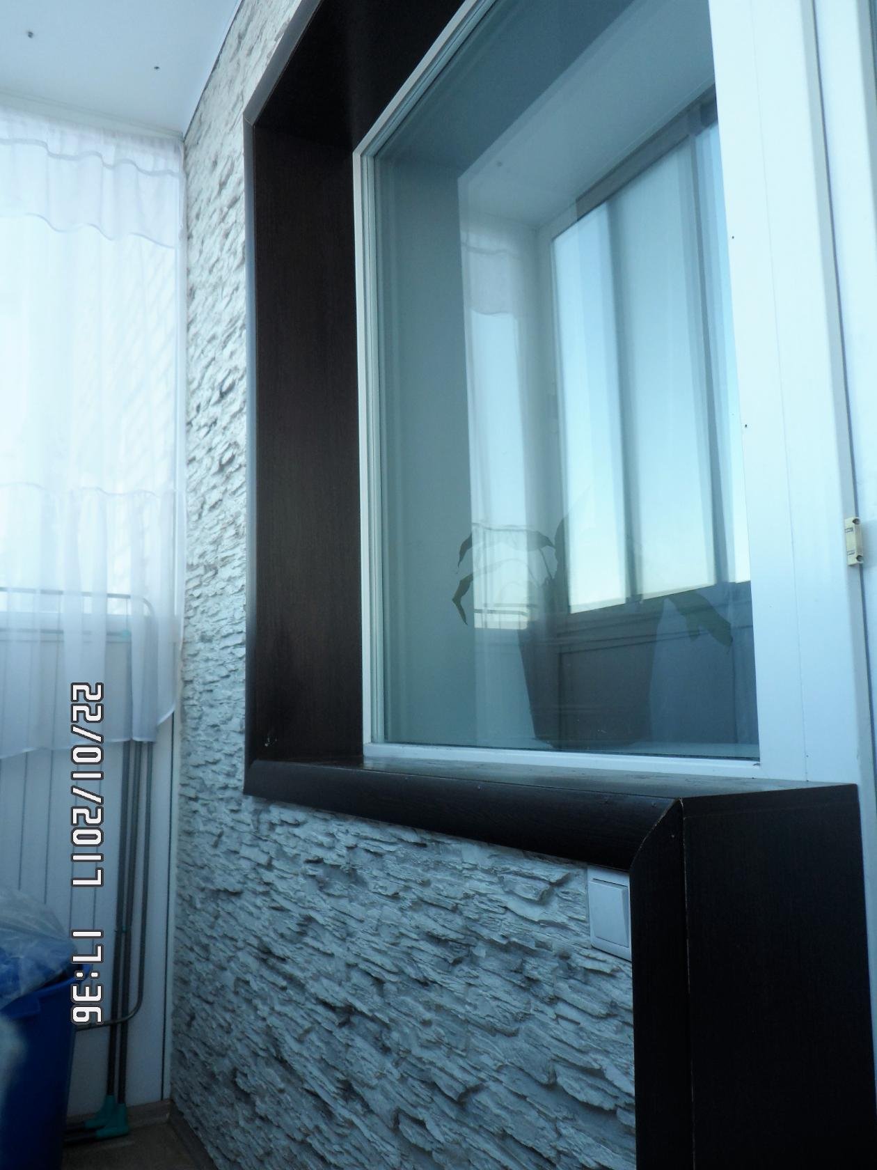 Отделка окна на балконе снаружи камнем