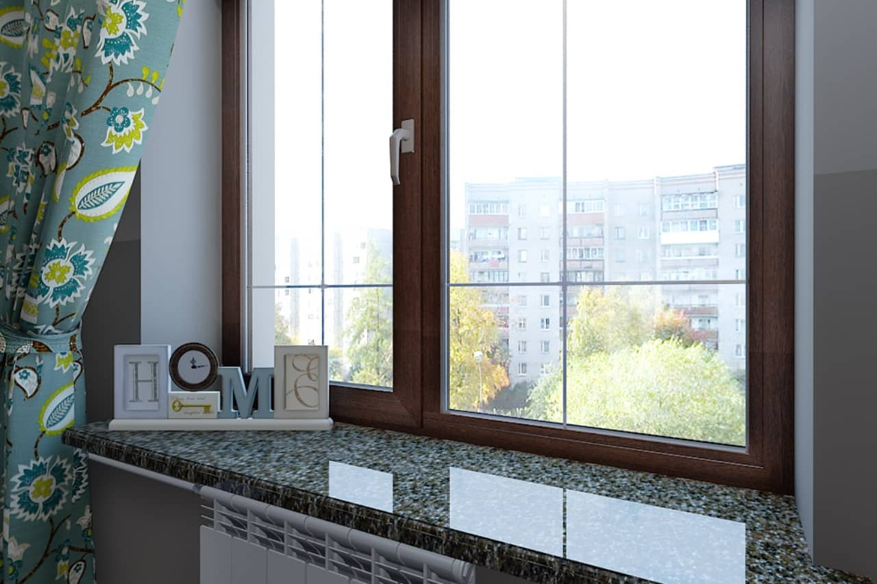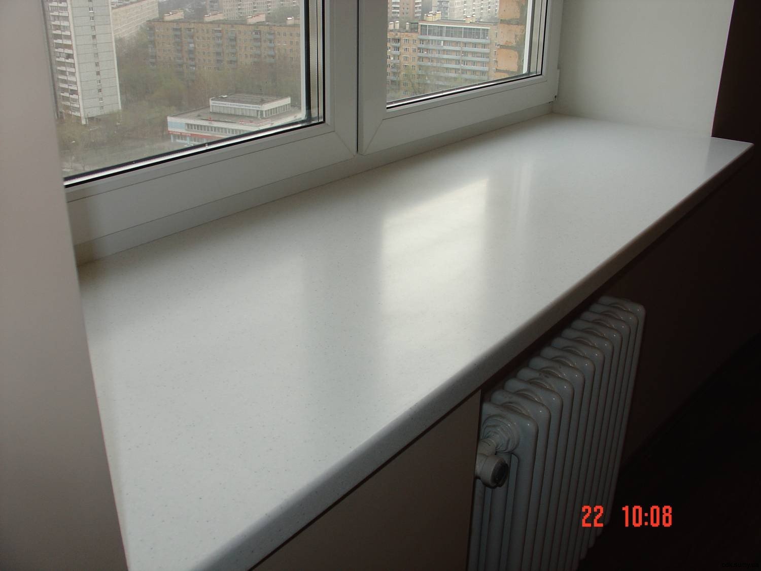 Подоконник из искусственного камня у двери на балкон