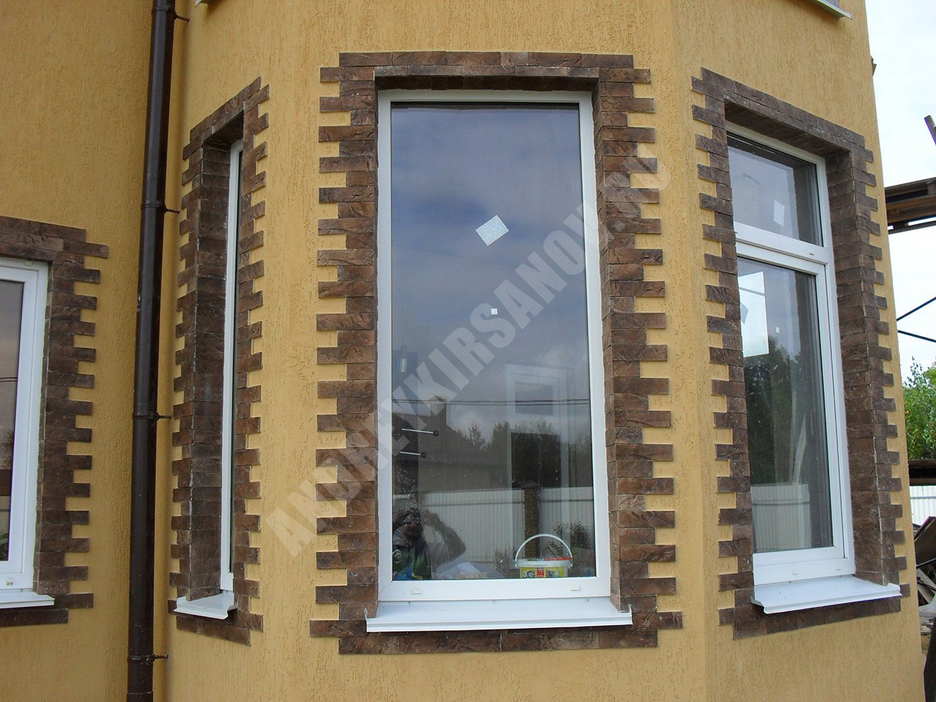 Отделка окон снаружи камнем