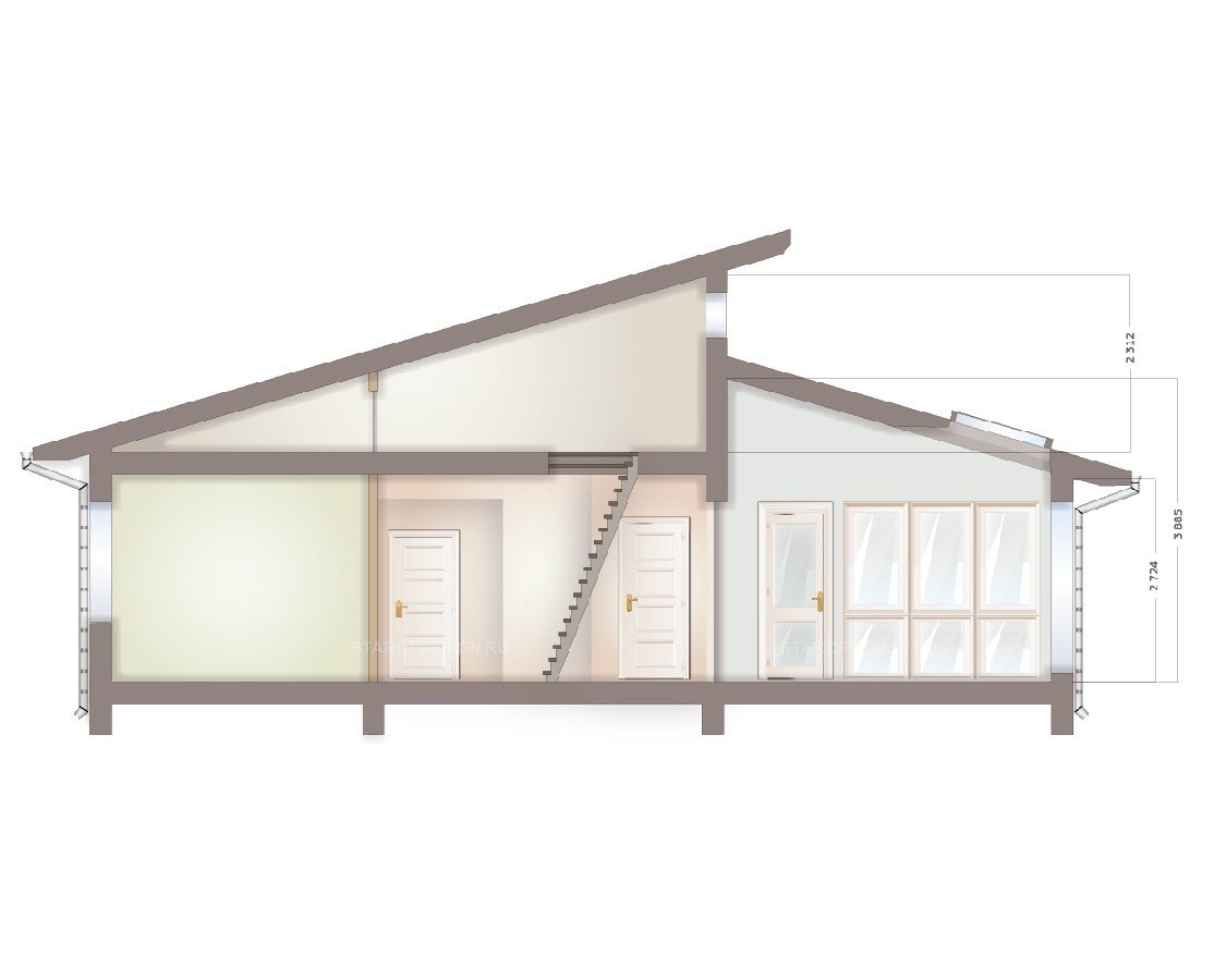 Дом с односкатной крышей и антресольным этажом